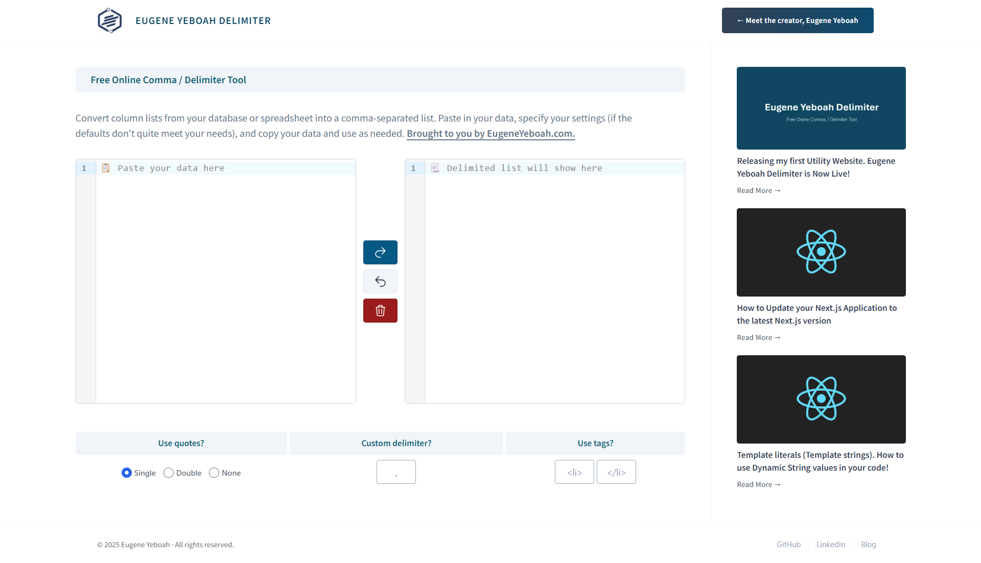 You can find the delimiter tool's project page here, which also includes a link to the live website: https://eugeneyeboah.com/projects/delimiter