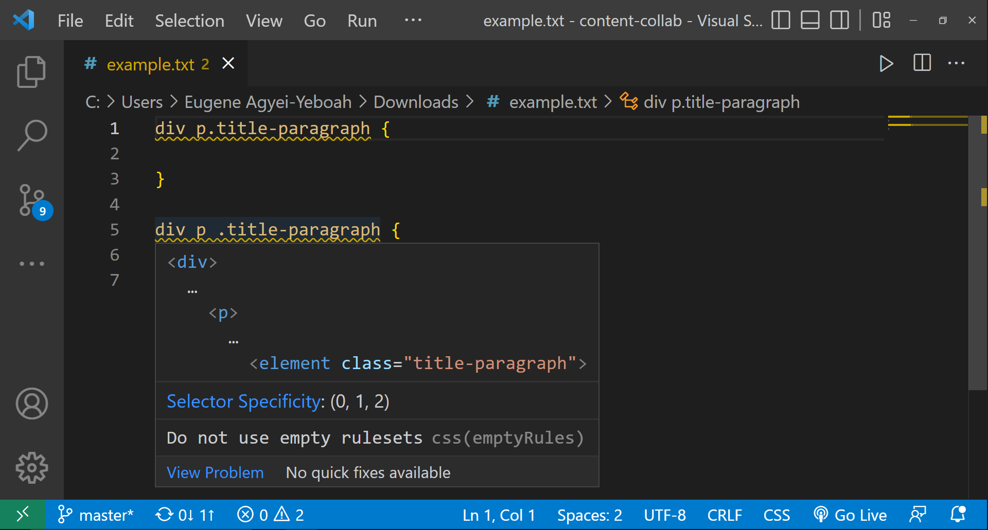 I've been writing CSS for a while now, but I was always unclear as to why some of the rules I wrote did not target the element I intended for them to target - even though I was certain that I wrote them correctly. This was until I found a super easy trick in VS Code (Visual Studio Code) that put everything in perspective for me. Before we begin, a quick question. What is the difference between the two CSS selections below? If you don't understand, this post is for you.